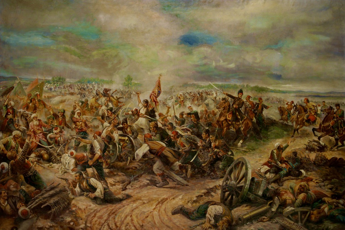 ( на слици: Афанасиј Иванович Шелоумов - ” Битка на Мишару”, 1806; Шелоумов је поред изврсног сликара био и неустрашиви ратник оба светска рата)