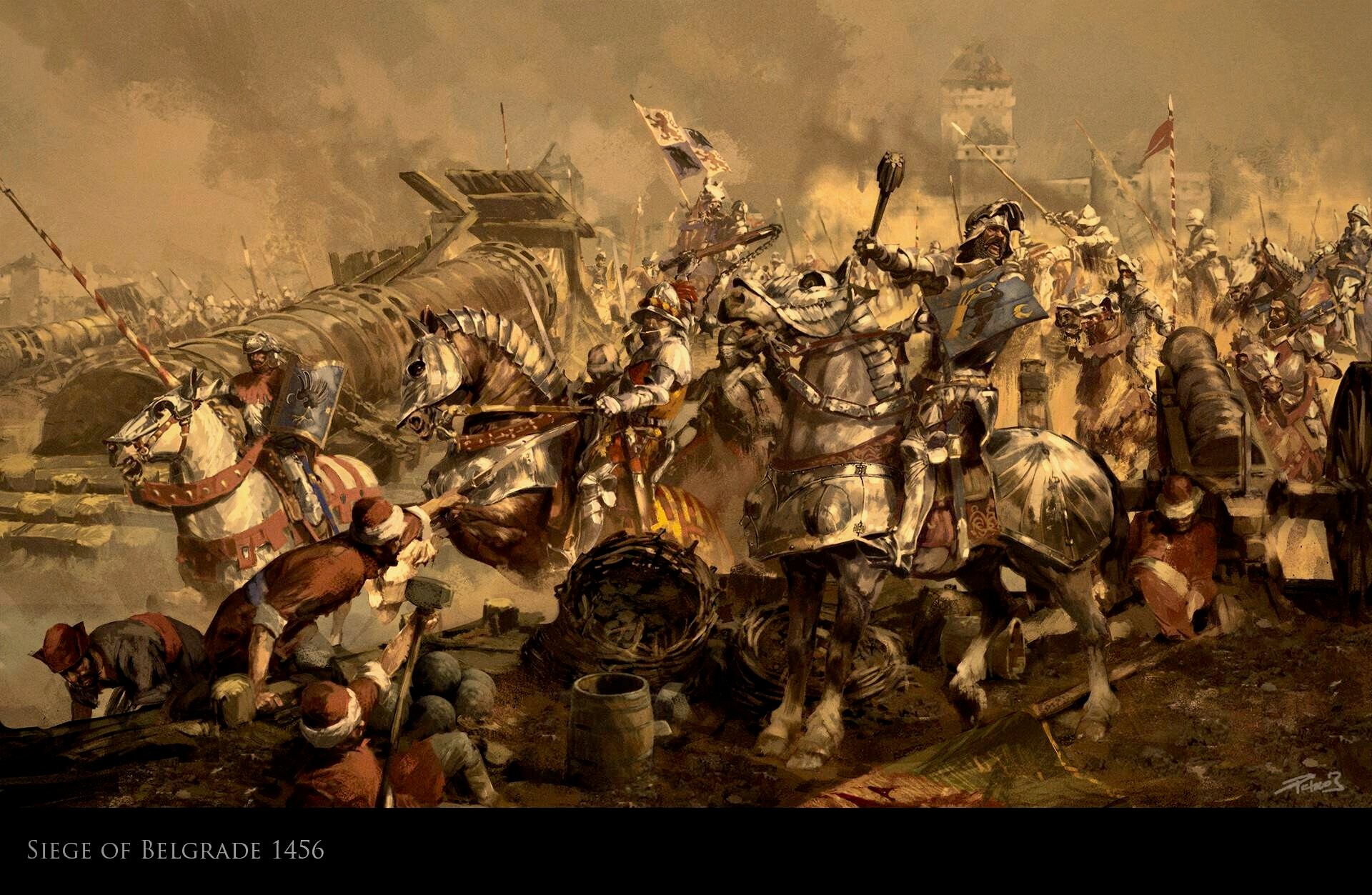 ( на слици: Balázs Petheő - "Опсада Београда 1456”, Мађарски институт за истраживање и развој образовања)